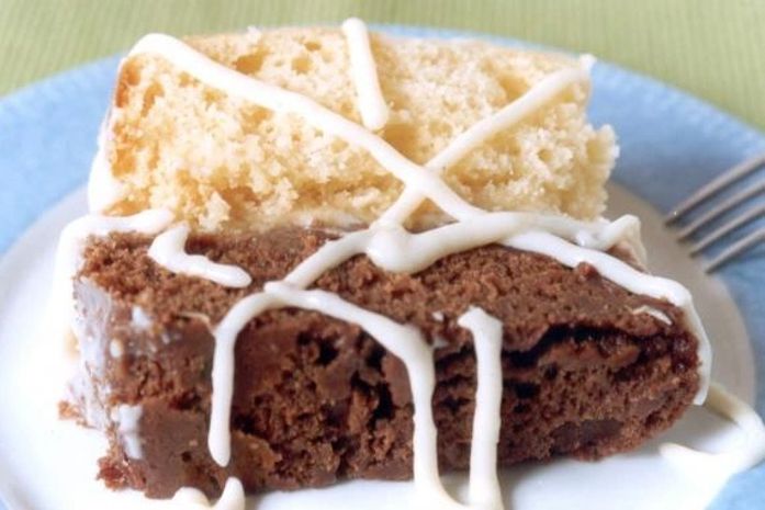 faça os dois bolos conforme as instruções da embalagem. Unte e enfarinhe duas fôrmas redondas sem buraco central de 20 cm e despeje as massas. Asse em forno médio (180ºC), pré-aquecido por 30 minutos. Espere amornar, desenforme e reserve.
