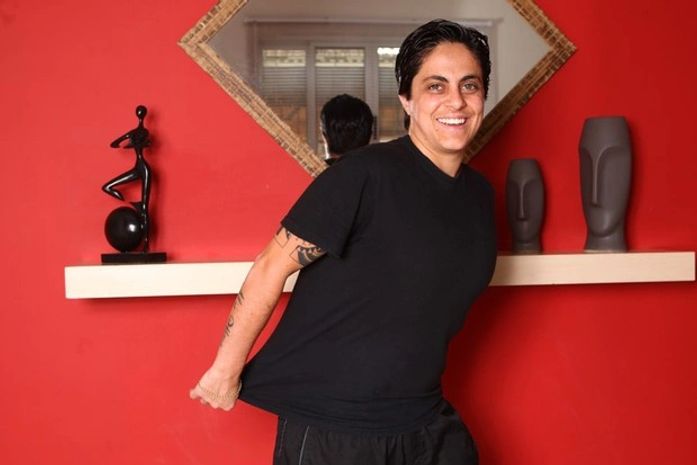 Usando calça e camiseta larga, Thammy Gretchen chegou animada para mais uma aula de pilates. O exercício já contribuiu para que ela enxugasse seis dos 10 quilos que precisa eliminar de sua silhueta. “Agora só faltam quatro”, diz, enquanto estica a camiseta e mostra a barriguinha menos saliente. Há alguns meses, Thammy viu sua rotina mudar drasticamente ao ser convidada pela autora Glória Perez a integrar o elenco de sua próxima novela , “Salve Jorge”. Sem nunca ter estudado para ser atriz, a ex-dançarina está empenhada na preparação para não fazer feio em sua estreia. “Para mim, está sendo tudo novo. Os ensaios estão sendo uma novidade, minha vida mudou muito. Nunca tinha feito teatro. Tenho uma preparação e estou fazendo no feeling, assim como foi meu teste”, conta Thammy, que mudou toda a sua rotina. “Antes, acordava muito tarde. Agora, estou acordando mais cedo, me alimentando melhor”.