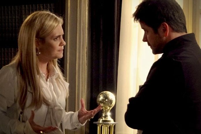 Carminha (Adriana Esteves) chega em casa e vai direto falar com Tufão (Murilo Benício), toda fofa. Ela inventa que foi até a ONG ver crianças doentes e Tufão explode: “Que crianças, Carminha? Não tem criança nenhuma! Tu não teve na obra social porcaria nenhuma. O padre Solano mentiu, você tá mentindo! Onde é que foi parar o dinheiro da obra social? Diz!”