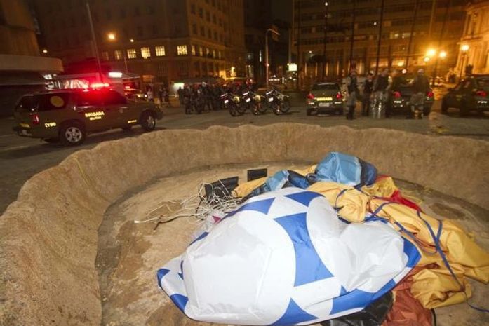 De acordo com a polícia, além dos feridos e do boneco inflável - símbolo da Copa do Mundo de 2014 - destruído, houve também um veículo que foi danificado e alguns registros de insultos por parte dos manifestantes.