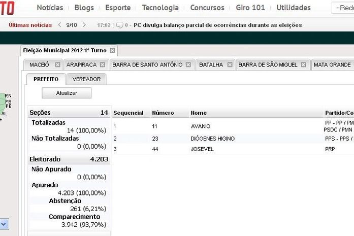 Já em Coqueiro Seco, Tadeu Fragoso (PTB) foi eleito com 1.785 votos. Decele Dâmaso (PSDB) teve 1.248 votos, já Gilvan Oliveira (PRTB) teve 283 votos.