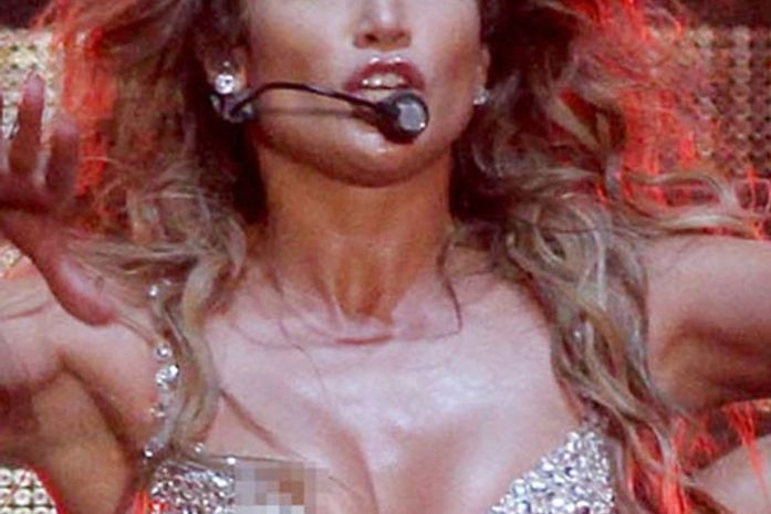 A cantora fazia uma performance quando o seu mamilo direito pulou para fora do decote, segundo informações do site Radar Online. Após o incidente, Jennifer guardou o seio fugitivo e continuou a apresentação normalmente.