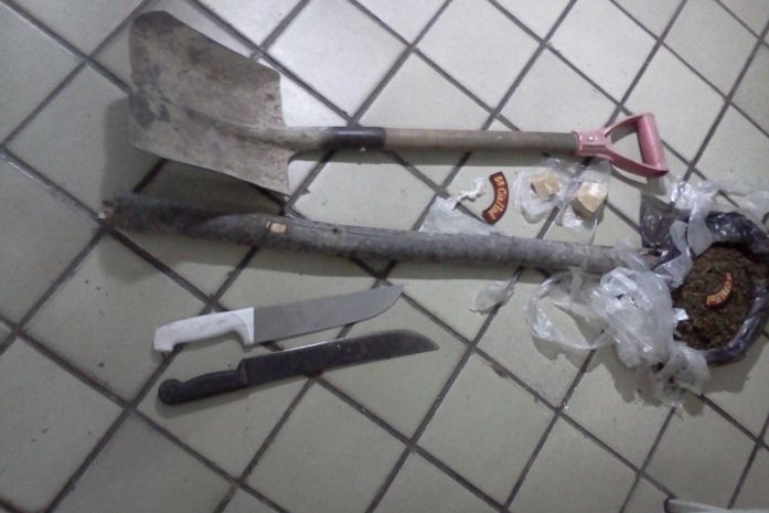 Com os detidos, também fora encontrado uma quantidade maconha e crack. “Quando chegamos ao local da ocorrência eles disseram que a polícia ali não entrava e que a região já tinha dono. Solicitamos apoio de outra guarnição e iniciamos a procura por objetos ilícitos. Fomos recebidos com facões, paus e pás”, informou um PM a reportagem.