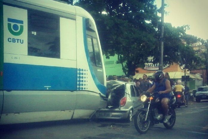 Mais um choque de veículo de passeio com o Veículo Leve sobre Trilhos (VLT) foi registrado na manhã desta terça-feira (16), no bairro da Cambona. Um automóvel Celta perdeu o tempo do cruzamento, uma vez que ficou preso no congestionamento e foi atingido na traseira. Porém, a colisão não deixou feridos.