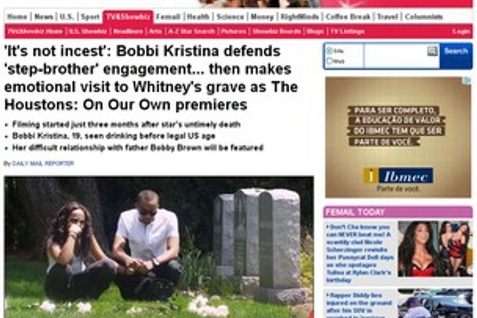Bobbi Kristina defendeu-se das acusações de incesto que vem sofrendo desde que assumiu o noivado com o meio-irmão Nick Gordon. "Todo mundo está entendendo errado. Não é incesto", diz ela em um vídeo divulgado pelo "Daily Mail", que mostra a filha de Whitney Housto n visitando o túmulo da mãe pela primeira vez, em maio desta ano, apenas três meses depois da morte da cantora.