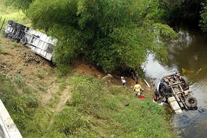 Por sorte um acidente ocorrido na manhã deste domingo (28), na rodovia BR 101, próximo ao município de Joaquim Gomes, não terminou em tragédia. O motorista de uma carreta com placa LXH- 5109/ PE, perder o controle do veículo em uma curva e caiu dentro do rio Camaragibe.