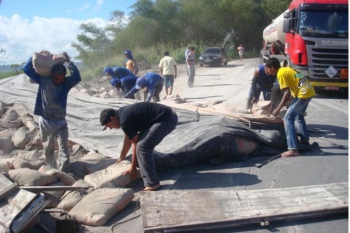 Agentes da Polícia Rodoviária Federal foram deslocados para a ocorrência. Toda carga de cimento foi saqueada por moradores das imediações e motoristas que passavam no local.