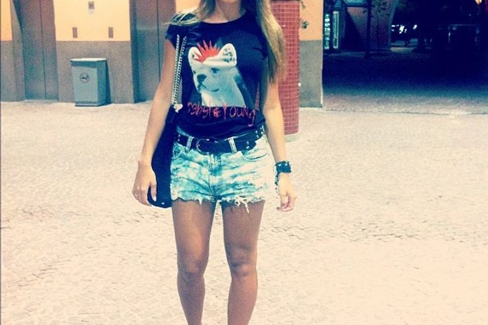 Na noite deste domingo, 28, a ex-BBB Adriana usou um short jeans curtinho para ir ao cinema com o namorado, o também ex-BBB Rodrigão, em um shopping na Zona Oeste do Rio. “Olhem o short que fiz com uma calça velha e faca de serrinha!”, contou a ex-participante do “BBB” aos seus seguidores na rede social Instagram.