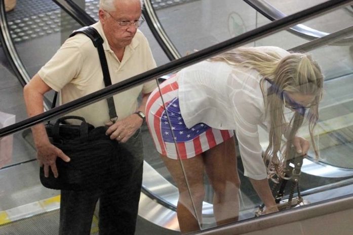 Parece que Jessica Lopes, a Peladona de Congonhas, está solidária às vítimas do furacão Sandy. Nesta quinta-feira, 31, ela foi fotografada no aeroporto que lhe deu fama, em São Paulo. O que chamou atenção é que a loira usava uma saia com estampa da bandeira dos Estados Unidos.