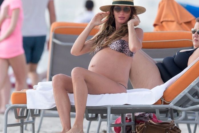 Gisele Bündchen escondeu quanto pode sua gravidez. Agora, na reta final da gestação, parece que resolveu relaxar um pouco. Neste domingo (4), a modelo brasileira foi fotografa bem à vontade, barrigão à mostra, enquanto relaxava em uma praia de Miami, nos Estados Unidos.