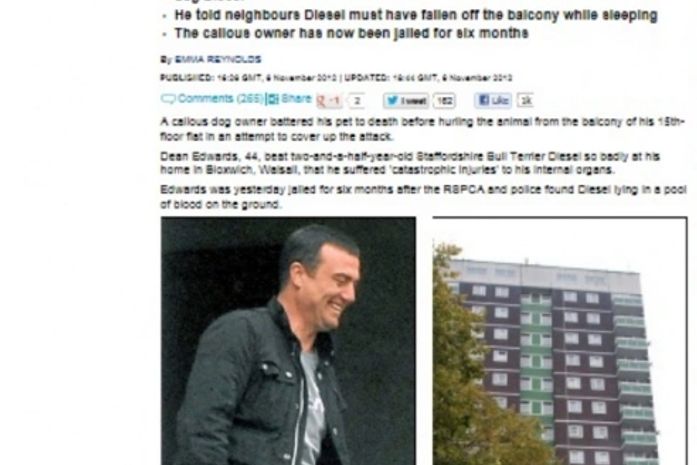 Dean Edwards chocou a vizinhança da região de Walsall, na Inglaterra, onde vivia. O homem de 44 anos espancou seu cachorro de estimação até a morte. Depois, na tentativa de encobrir o crime, jogou o corpo do animal da varanda de seu apartamento, no 15º andar de um prédio.