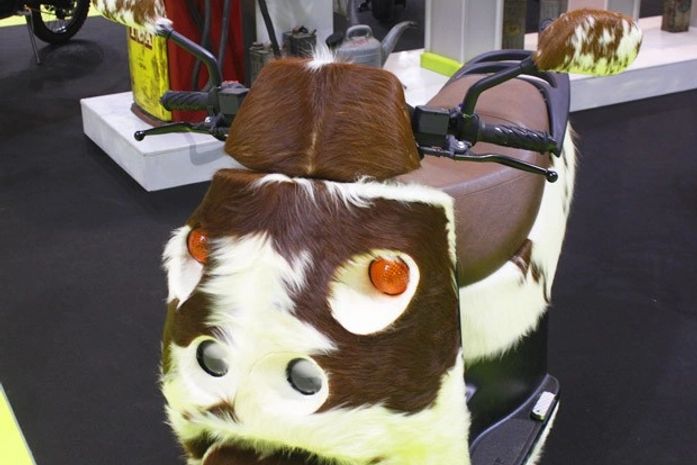 A base do veículo é o VR One, que custa 5.000 euros (R$ 13,1 mil) -assim a customização com pelos de vaca custa 4.000 euros (R$ 10,5 mil). O modelo, segundo a empresa, chega a 100 km/h e tem autonomia de até 70 km. São necessárias 4 horas e meia para recarregar a bateria e o peso do VR One é de 140 kg. Seu propulsor elétrico gera 11,5 cv de potência e 1,73 kgfm.