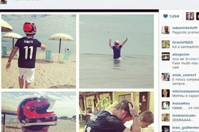 Barrichello publicou na rede social Instagram fotos mostrando o momento em que ele entrava no mar em Santa Catarina, onde se encontra após a disputa das 500 Milhas de Kart, disputadas no Beto Carrero World, neste sábado.