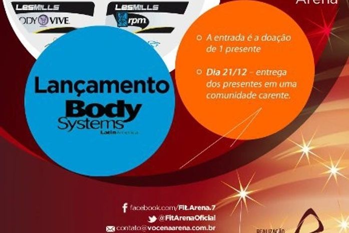 Arena realiza um Natal Solidário. Dos dias 18 a 20 de dezembro os lançamentos da Body Systems vão acontecer com o objetivo de promover a interação e o bem-estar, cada aluno deverá levar um brinquedo, que serão entregues a uma instituição de caridade.