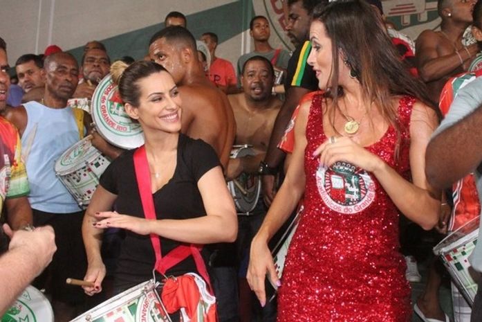 Superanimada, Cleo Pires tocou percussão no ensaio da Grande Rio na noite desta terça-feira, 18. Carla Prata, rainha de bateria da escola de samba carioca, mostrou demais e distribuiu panetones para os integrantes da agremiação na quadra em Caxias, na baixada fluminense do Rio.