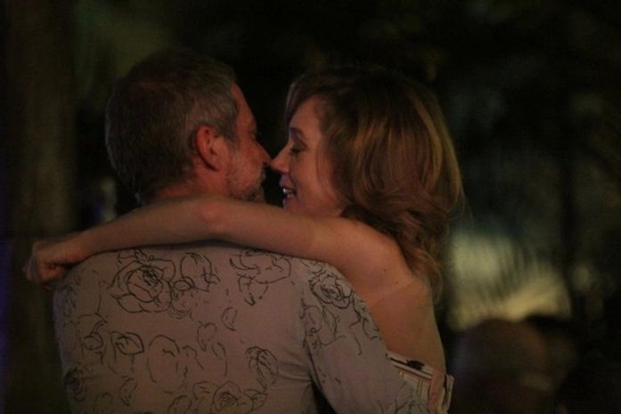 Camila Morgado trocou beijos calientes com o namorado, Luiz Stein, na noite desta terça-feira, 8. Parte do elenco de “O Canto da Sereia” se reuniu para assistir ao primeiro capítulo da microssérie em um quiosque na Lagoa, Zona Sul do Rio.