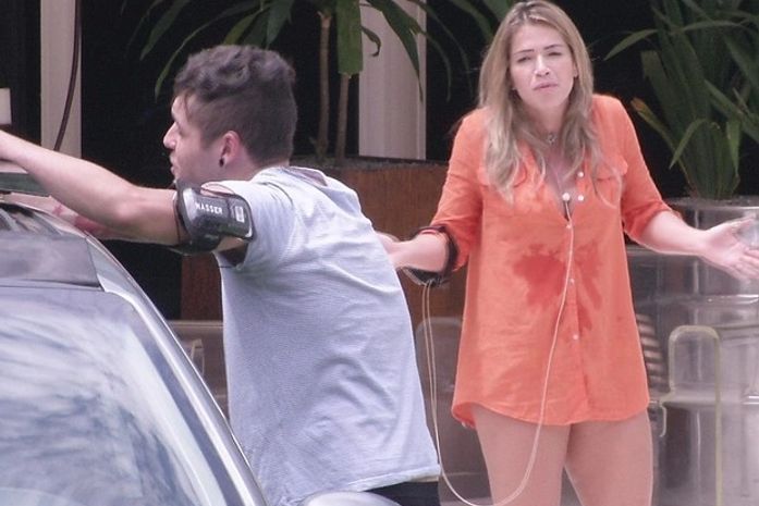 A sister não gosta do tom dos brothers e se zanga. "Se for falar comigo, presta atenção. Um falou, todo mundo falou e eu não gosto de falar sobre isso". "Eu te peço desculpa", responde o gaúcho, abaixando a cabeça sobre o teto do automóvel.