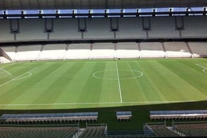 A pouco mais de duas semanas da inauguração, com a rodada dupla da Copa do Nordeste (Fortaleza x Sport e Ceará x Bahia), o gramado do estádio, plantado há quase dois meses, já está bem 'verdinho' e na fase final de maturação para suportar uma partida