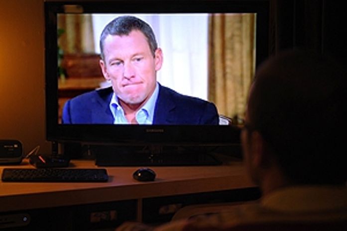 Armstrong contou, emocionado, como pediu ao filho Luke, 13, que parasse de defendê-lo perante os colegas de escola das acusações de doping contra o pai.