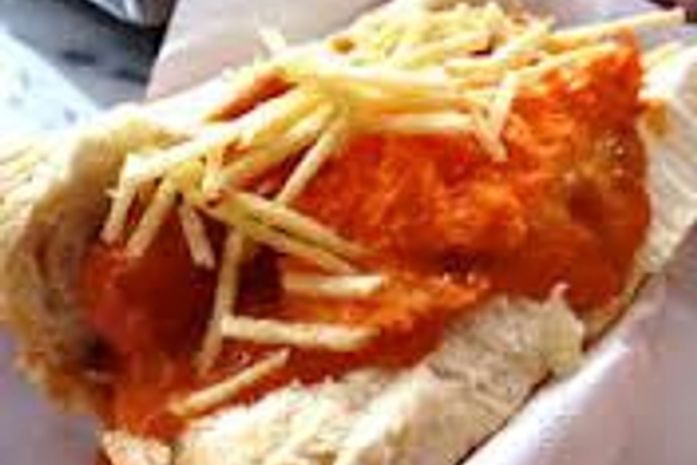 2º - No pão, coloque o molho de salsicha, a cenoura ralada com maionese, o queijo mussarela embaixo do molho quente para poder derreter bem, e, por último, a batata palha.