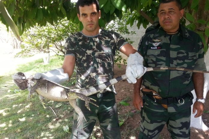Sob o comando do Tenente Wenderson, Cabo Kecé e soldado Fabrício, a patrulha ambiental do BPA foi ao local, onde constatou que a iguana estava na chácara. O animal foi resgatado e levado ao Ibama, onde ficará durante ummês e depois será devolvido ao seu habitat natural.
