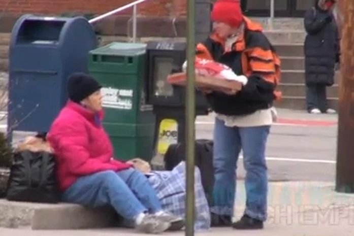 A pizzaria acredita no “sargento”, e diz que não cobrará pela comida. O vídeo em seguida mostra o casal de moradores de rua recebendo a comida, enquanto os homens comemoram no carro. A pegadinha se espalhou pela rede, e já ultrapassou 1 milhão de visualizações.