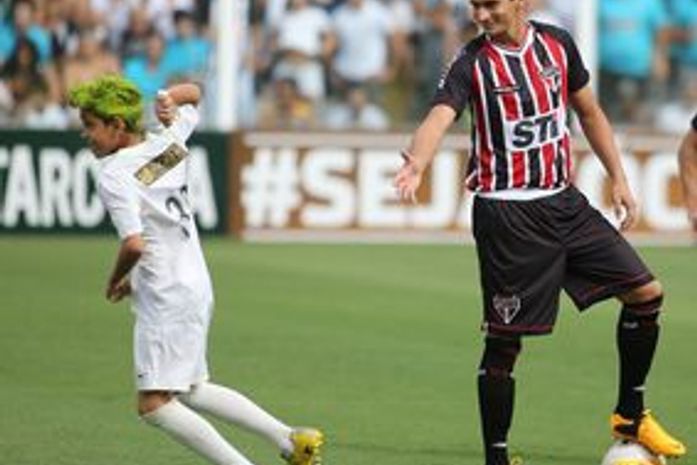 O garoto Gustavo Henrique Diniz Mathias, de 12 anos, fez a alegria de muitos santistas no domingo. No gramado da Vila Belmiro, pouco antes do clássico contra o São Paulo, ele fingiu que iria cumprimentar o meia Ganso e saiu correndo, deixando o jogador 'no vácuo'. A atitude repercutiu nesta segunda-feira e divertiu até os pais do menino.
