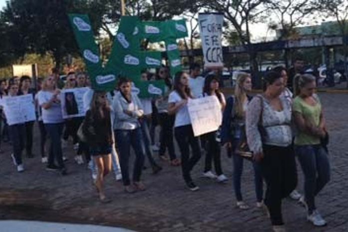 Integrantes da caminhada fizeram uma breve parada em frente ao prédio do Centro de Ciências Rurais (CCR), onde alguns professores se manifestaram. O coordenador do curso de agronomia, Toshio Nishijima, disse que "a coordenação está à disposição para que os alunos possam seguir em frente".