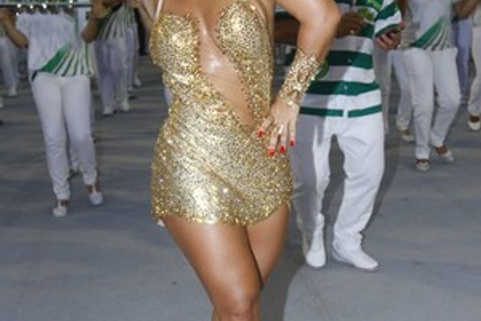 Sabe como se chama aquela mocinha que vem na frente de uma banda de músicos fazendo acrobacias? Em geral com um mastro na mão? Baliza de banda! É essa a fantasia de Carla Prata, a rainha de bateria da Grande Rio, que vai falar sobre a disputa do Rio de Janeiro pelos royalties do Petróleo.