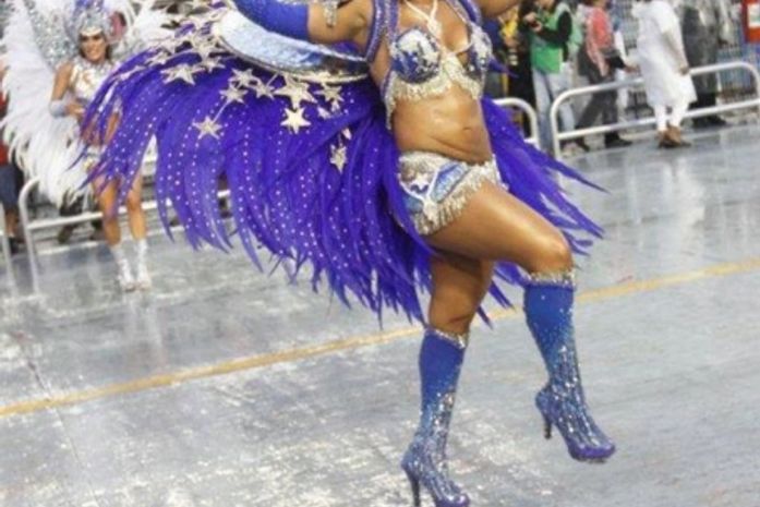 Milena Nogueira chamou atenção ao desfilar à frente dos ritmistas da Águia de Ouro na manhã deste sábado, 9. A mulher do sambista Diogo Nogueira exibiu uma barriga estranha enquanto sambava no Anhembi.