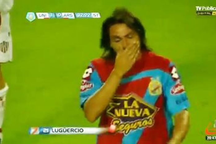 Quando o placar marcava 1 a 0 para o adversário, Lugüercio recebeu um beliscão no bumbum do rival Emanuel Britez e não teve dúvidas: soltou um forte soco no adversário. O cartão vermelho saltou na hora do bolso do árbitro Mauro Vigliano.