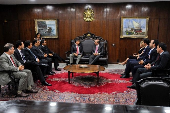 O presidente do Senado, Renan Calheiros (PMDB-AL), recebeu nesta quarta-feira (20) a visita de representantes da Associação dos Delegados de Polícia do Brasil (Adepol-BR). Eles entregaram a Renan a medalha Senador Delegado Romeu Tuma, que é concedida a personalidades que se destacam no apoio às atividades da categoria dos delegados e nas ações de fortalecimento da segurança pública nacional.