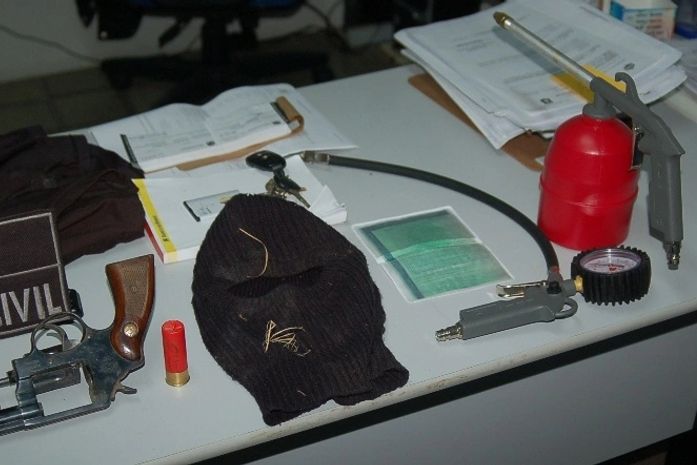 Na caminhonete recuperada foram encontrados munições calibre 38, algumas delas deflagradas, munição para espingarda calibre 12, uma balaclava e outros objetos que estavam em poder dos assaltantes, inclusive objetos da prefeita, vitima do assalto.