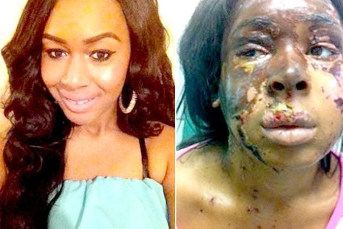 Naomi Oni, 20 anos, foi atacada em Dagenham, no condado britânico de Essex, no dia 30 de dezembro do ano passado. Ela passou um mês internada para tratar as queimaduras, que a deixaram parcialmente cega.