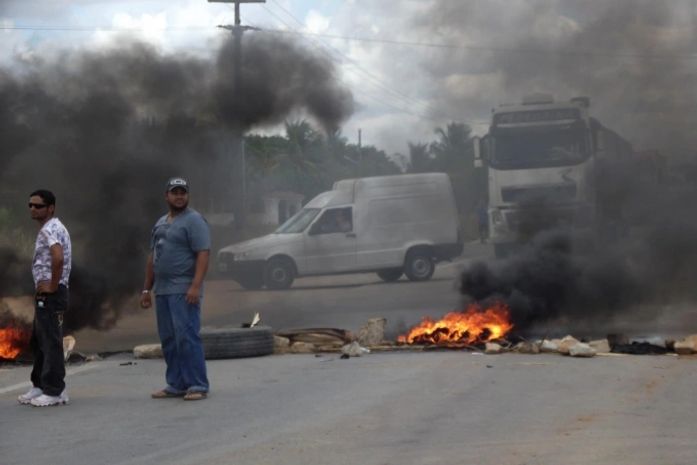 No protesto, os trabalhadores atearam fogo em pneus e galhos de árvore e impedem a passagem dos veículos. Um longe congestionamento já é registrado no local. Equipes da PRF estão indo ao local para negociar com o grupo e tentar liberar a rodovia.