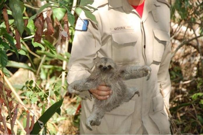 Três jovens salvaram e entregaram ao Corpo de Bombeiros, na tarde deste domingo (24), um filhote de bicho preguiça e sua mãe, que estavam sendo apedrejados por vândalos, em um sítio localizado na Rua Matriz, em Marechal Deodoro.