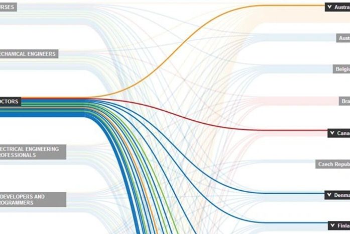 Um guia interativo produzido pela BBC mostra exemplos do que 30 países do mundo - parte da OCDE, Brics e Cingapura - fazem para atrair profissionais altamente qualificados e quais são os talentos mais procurados.