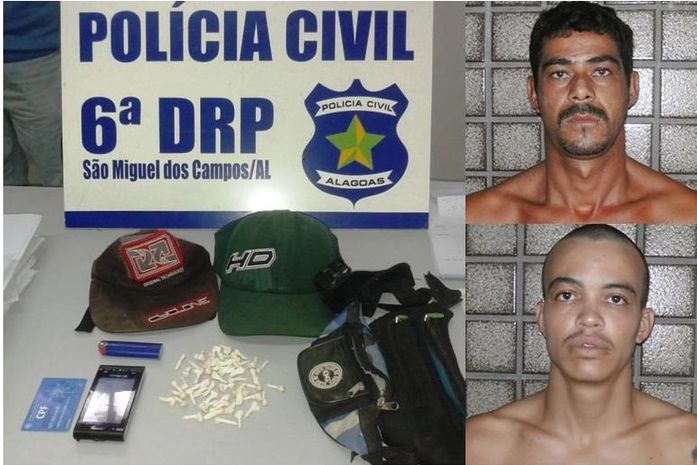 Dois homens presos pelo crime de tráfico de drogas no município de São Miguel dos Campos foram transferidos para a Casa de Custódia de Polícia Civil, em Maceió, neste domingo (14). Eles foram presos ontem, após a Polícia receber denúncias anônimas sobre a comercialização de entorpecente, na parte alta cidade.