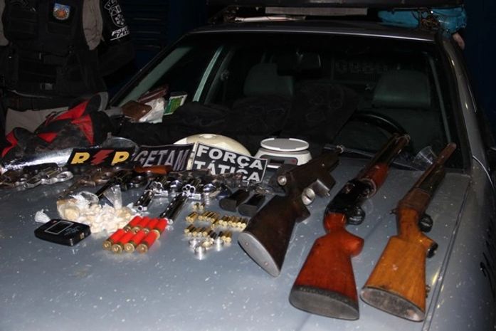 Segundo ele, a quadrilha é extensa, inclusive, com participação em assaltos a bancos no interior do estado. Com o bando foi apreendido duas espingarda calibre 12, uma metralhadora de fabricação caseira, seis revólveres calibre 38, 30 cartuchos de munições calibre 38, seis cartuchos calibre 12, 400 gramas de crack, blaclava, balança de precisão, carteiras e cartões de créditos.