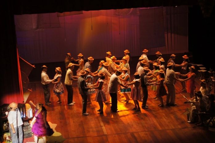 Baião de Dois é, portanto, um espetáculo de celebração da memória como elemento fundamental da encenação. “O nome sugere, já de início, alguma forma de plural, de coisas que os sentidos nem têm permissão para capturar. Escolhemos, por isso, resgatar memórias: individuais, coletivas, passadas, presentes, futuras. A cada revelação, o presente se torna passado; o futuro vem correndo saber do que se trata; e o passado fica ali, permeando nossas incursões pelo tempo/espaço, um jeito de fortalecer laços de ternura e elementos das identidades culturais desse Nordeste multiforme, multilíngue, multiamoroso. Um baião de muitos”, filosofa Fátima Menezes.