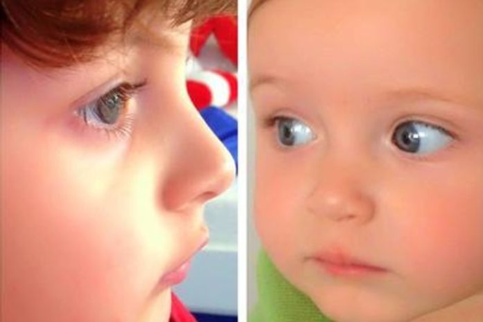 Na foto, um close do rosto deles, dá para ver de pertinho os olhos claros dos filhos de Claudinha.