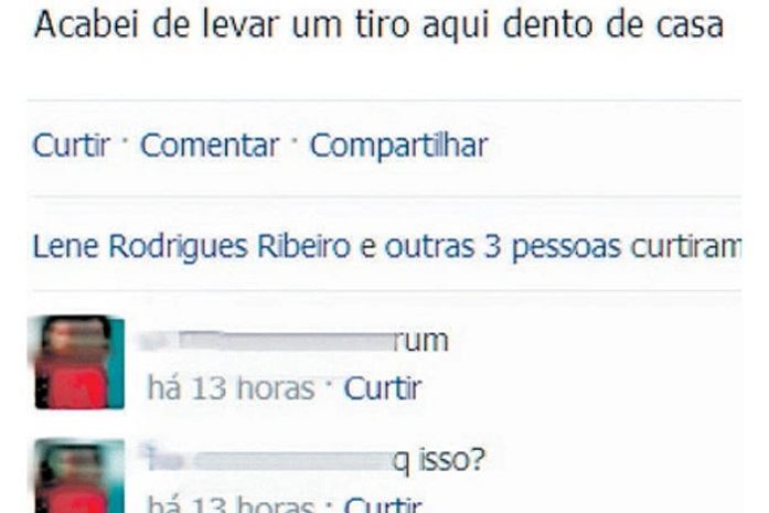 "Acabei de levar um tiro aqui dento de casa". A mensagem foi publicada no Facebook por Edna Célia de Oliveira, de 41 anos, pouco antes de morrer. O crime aconteceu em São Mateus, região Norte do Espírito Santo, por volta da meia-noite de domingo (14) e a postagem na internet foi apagada nesta segunda-feira (15).
