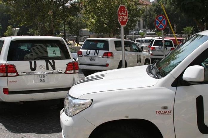 "O primeiro veículo da equipe de investigação de armas químicas foi deliberadamente atingido múltiplas vezes por franco-atiradores não identificados", disse o porta-voz Martin Nesirky. Ele acrescentou que ninguém ficou ferido, mas que a investigação foi suspensa.