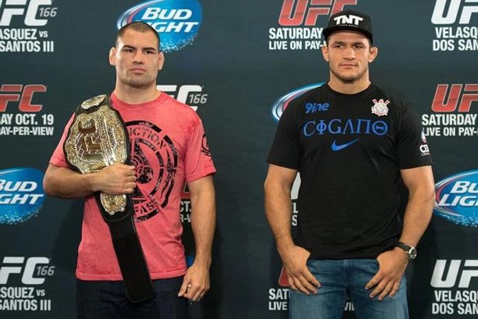 Eles nem parecem adversários: Cain Velasquez e Junior Cigano trocam elogios, evitam provocações, são respeitosos e mesmo assim travam a mais longa disputa do MMA recente - vão se enfrentar pela terceira vez em menos de dois anos, novamente pelo cinturão dos pesos pesados do Ultimate Fighting Championship (UFC). E apesar desse clima gentil e sem rivalidade, o brasileiro aposta que neste sábado acontecerá uma "guerra" no octógono, em Houston, no Texas, onde acontecerá o UFC 166.