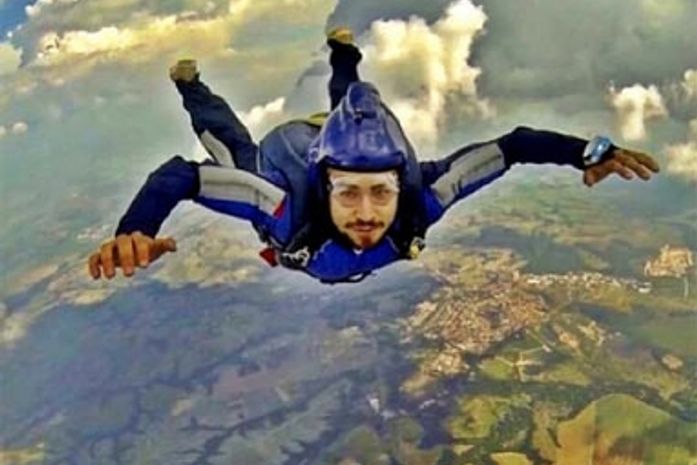 De férias, Caio Castro embarcou para São Paulo, mais precisamente para Boituva, que fica a cerca de 115 quilômetros da capital. O município é um verdadeiro point do paraquedismo. E lá foi o galã curtir a aventura.