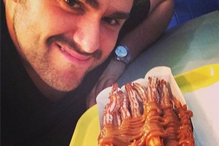 "Ultimo dia de viagem das férias. Hoje eu vou encher a cara de churros. De vez em quando pode, faz parte".