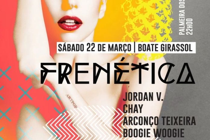 No próximo dia 22 de março na Boate Girassol, a Sacaí Produções traz para Palmeira dos Índios mais uma novidade, a festa FRENÉTICA. Em clima de final de verão a animação ficará por conta das discotecagens de Boogie Woggie, Jordan V. , Chay, Arconço Teixeira e um convidado surpresa.