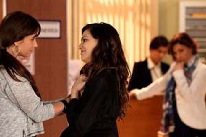 Em cena que vai ao ar nesta terça-feira (06) na novela Em Família, Clara (Giovanna Antonelli), aflita, está com a família no hospital aguardando notícias sobre o transplante de Cadu (Reynaldo Gianecchini), quando Marina (Tainá Müller) chega para dar uma força.