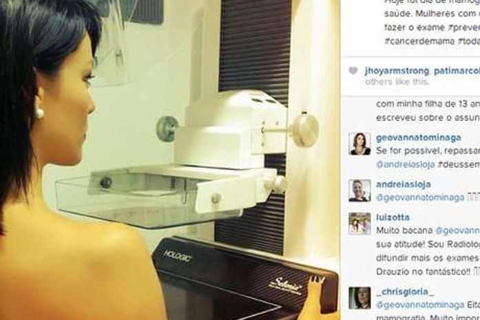 A atriz e apresentadora da TV Globo Geovanna Tominaga postou em sua rede social Instagram uma foto ao fazer o exame de mamografia, nesta segunda-feira (12).