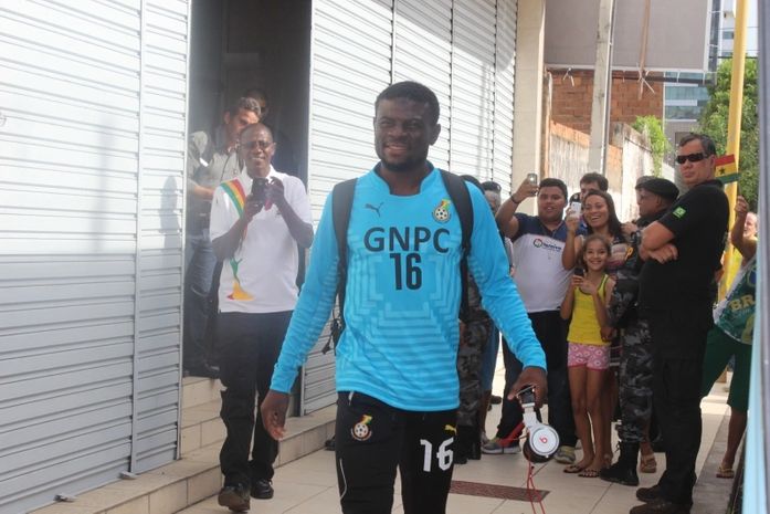 Um pequeno grupo de torcedores se aglomerou nos fundos do Hotel Raddisson, no bairro da Pajuçara, para acompanhar a saída da seleção de Gana para o Estádio Rei Pelé, na tarde desta quinta-feira (12). Os atletas seguem para o primeiro treino na cidade de Maceió.